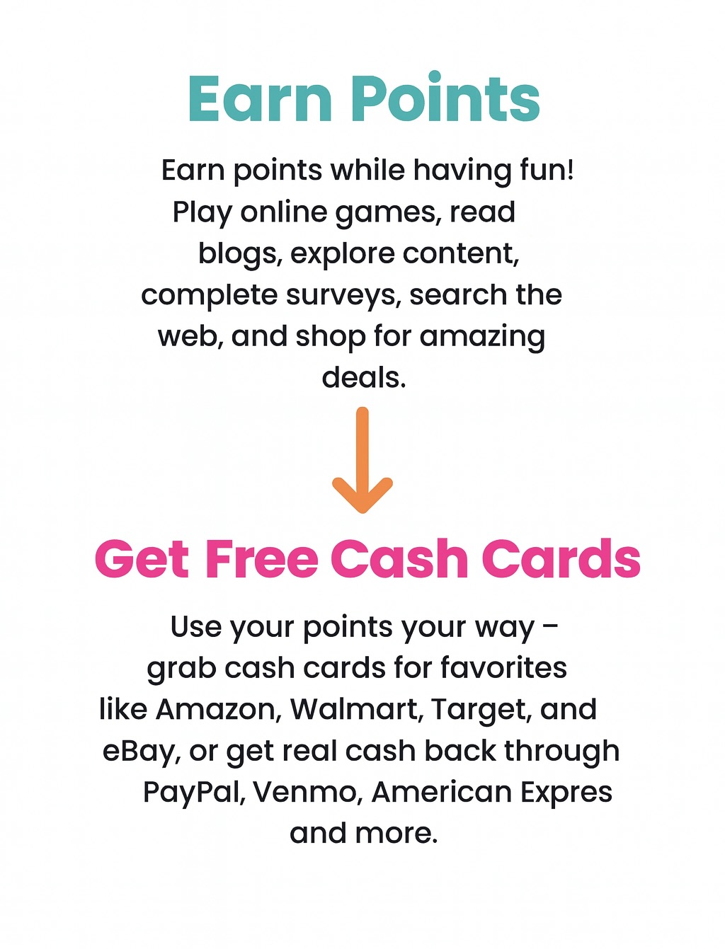 Cash back shopping at over 1500 retailers including Amazon, Walmart, Target, and Starbucks. Earn points for every dollar you spend plus get access to exclusive deals and coupons to your favorite retailers.